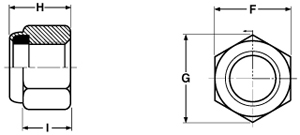 A six-sided nut with a nylon-filled collar at its back end and metric thread pitch. When a bolt or screw reaches the collar, the threads and nylon form a tight, frictional fit, restricting movement of the fastener when it is subjected to vibration. Generally manufactured in accordance with DIN Standard 985.