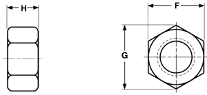 A six-sided internally threaded fastener whose thickness is .875 times the nominal nut size and whose width across the flats is 1.5 times.